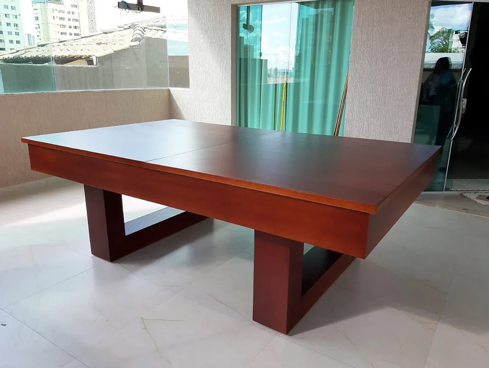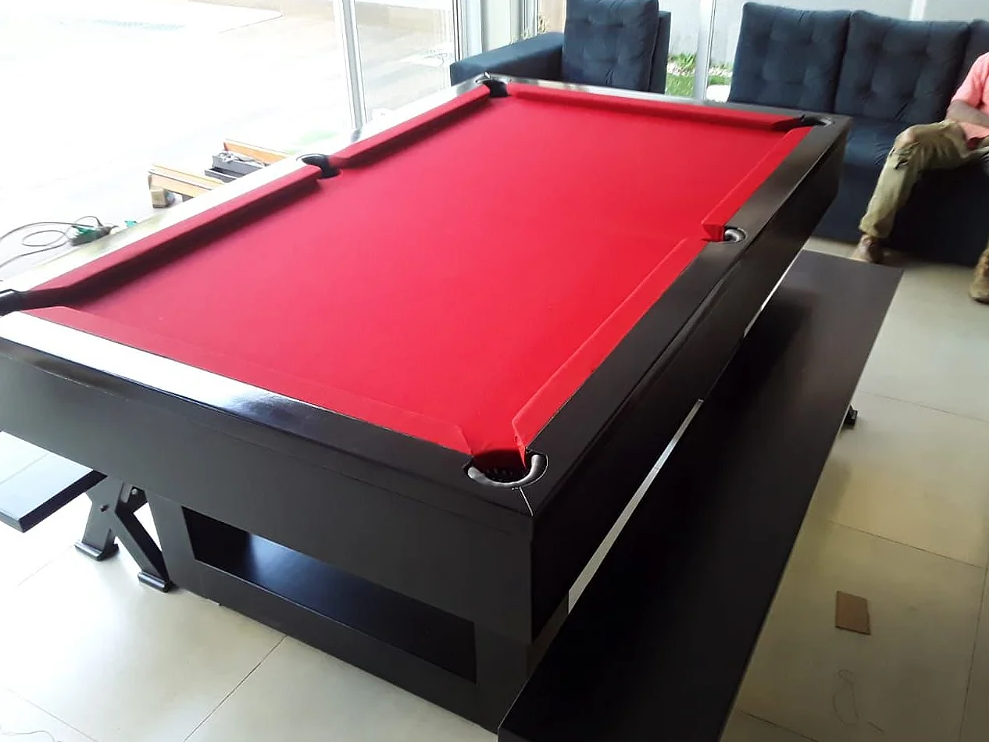 A mesa de sinuca três em um, se torna um objeto de decoração, sofisticado além de ser garantia de diversão e entretenimento.