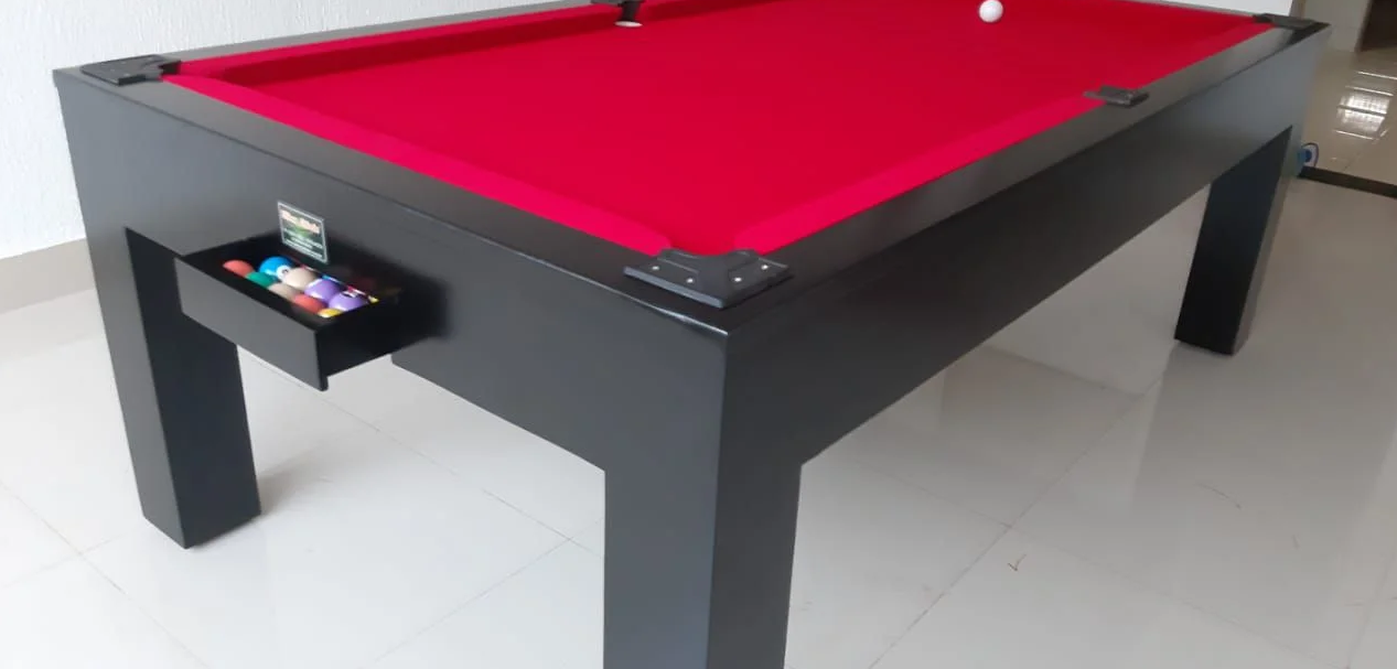 A mesa de sinuca três em um, se torna um objeto de decoração, sofisticado além de ser garantia de diversão e entretenimento.